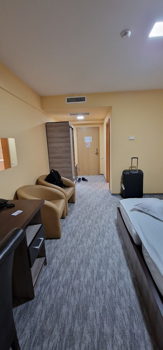 “ Good service. They have rooms with balcony. We took a room for 2 persons with patrimonial bed that was quite big (my height is 1.9 m)))) and comfortable. Breakfast was good with snack bar where you can choose from variety of meals. There is terrace in the court where you can smoke and drink and big parking space. I would recommend to stay there. ”